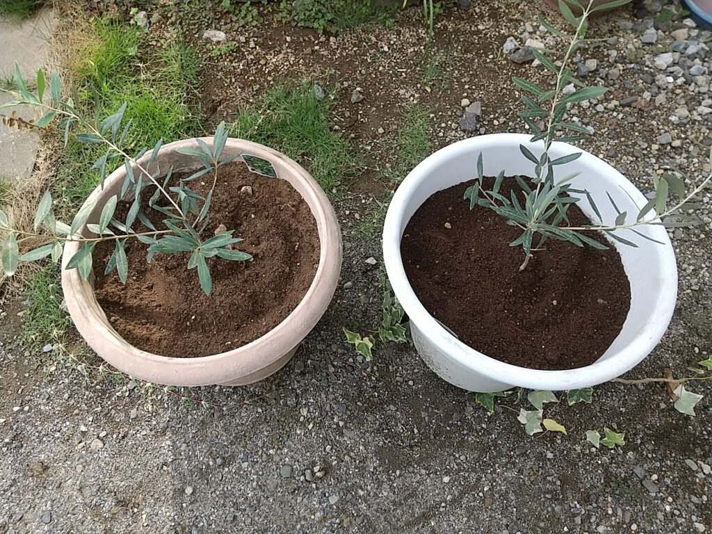 近所のお祭りでオリーブの苗を2本買いました。